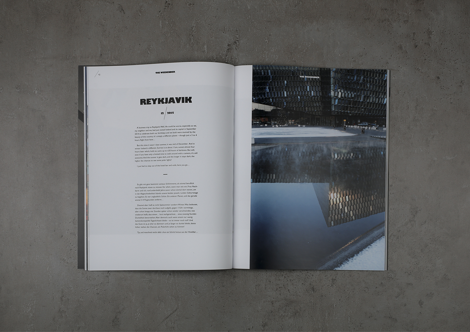 THE WEEKENDER magazine is a visual diary that captures the various places I have been lucky to visit during the last years. When going on longer trips I usually bring home thousands of photos and usually it takes some time to browse through them, select the best, do some editing and then create a large format book per trip. THE WEEKENDER isn´t of that, it contains only photos from short or weekend trips that would never fill any book.